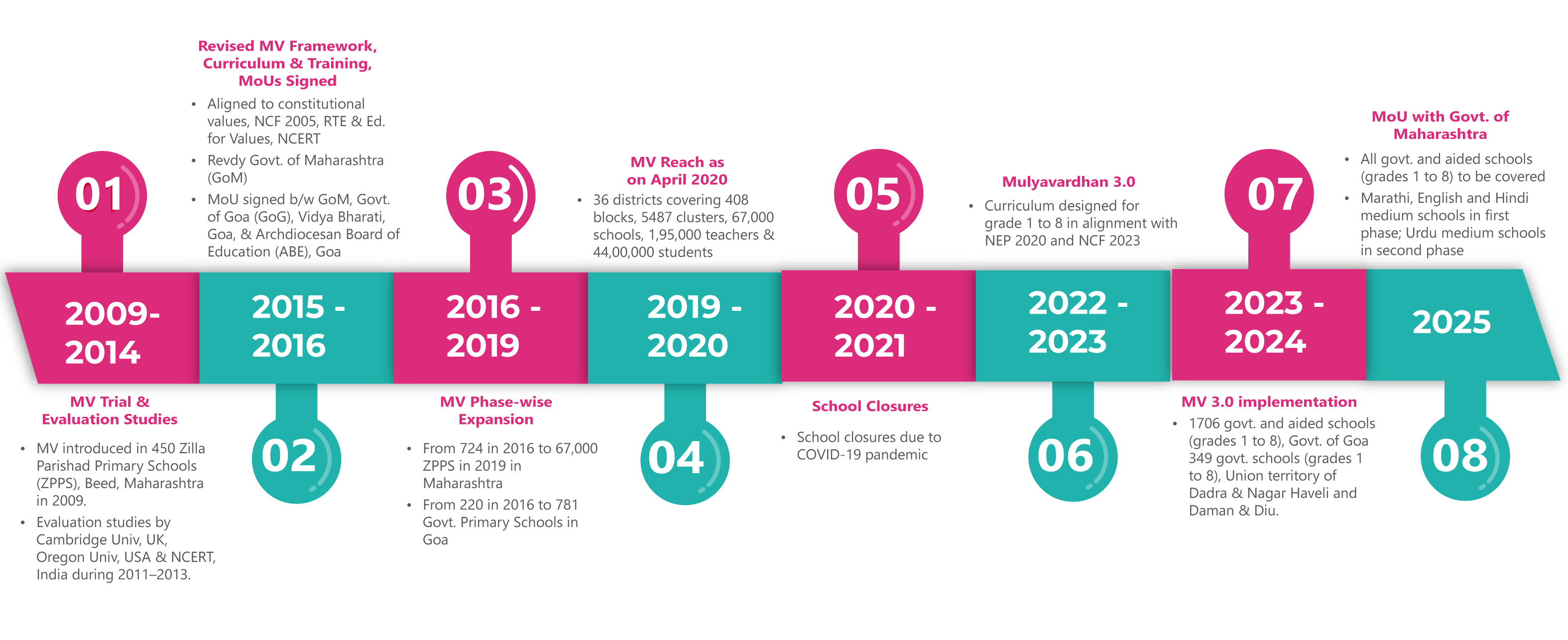 Mulyavardhan features meticulously designed and engaging activities for students in grades 1 through 8. These activities cover a broad spectrum of themes, including self-awareness, responsible behaviour, positive relationships, and social responsibilities.