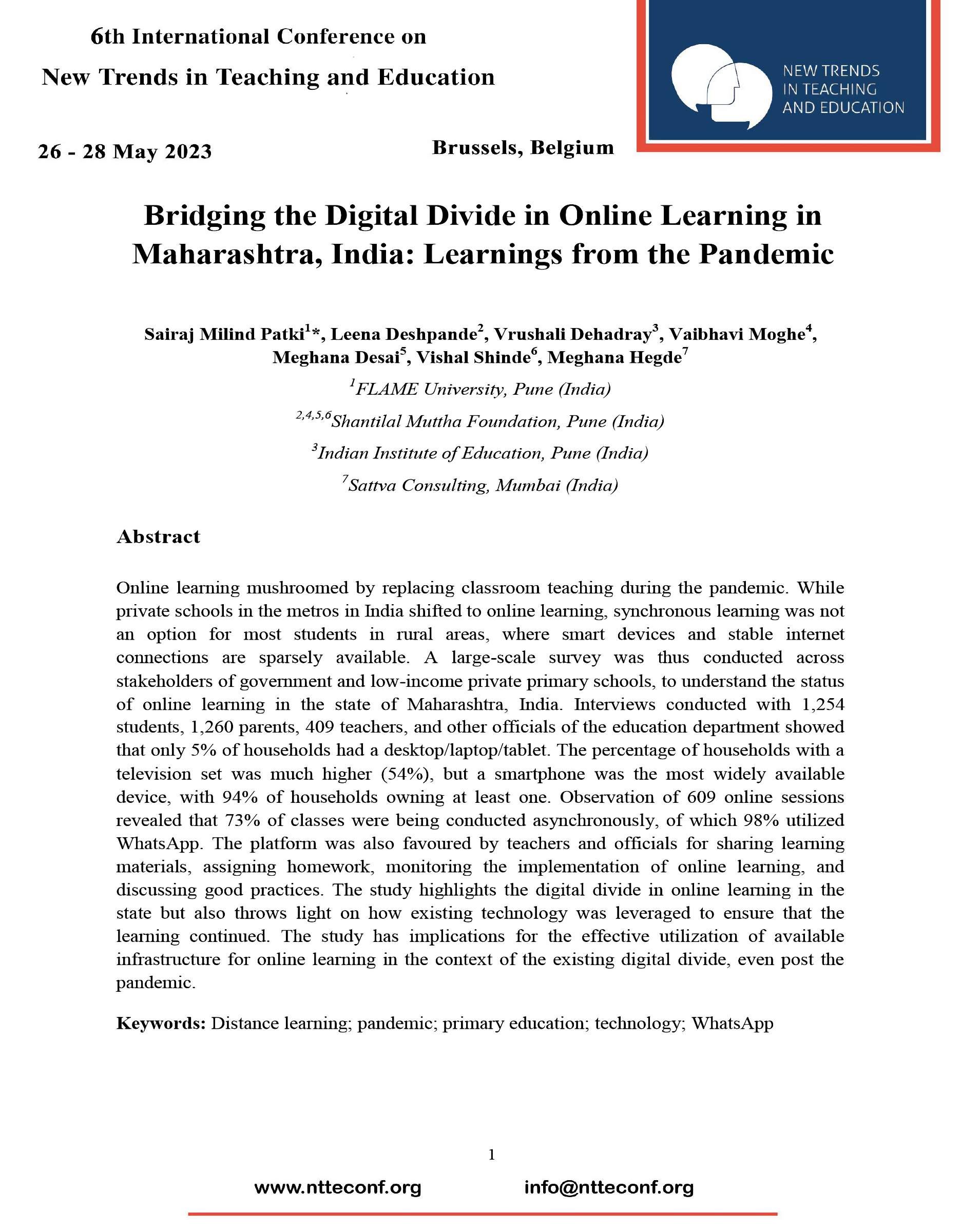 Bridging the Digital Divide in Online Learning in Maharashtra, India: Learnings from the Pandemic – Research Paper, 2023